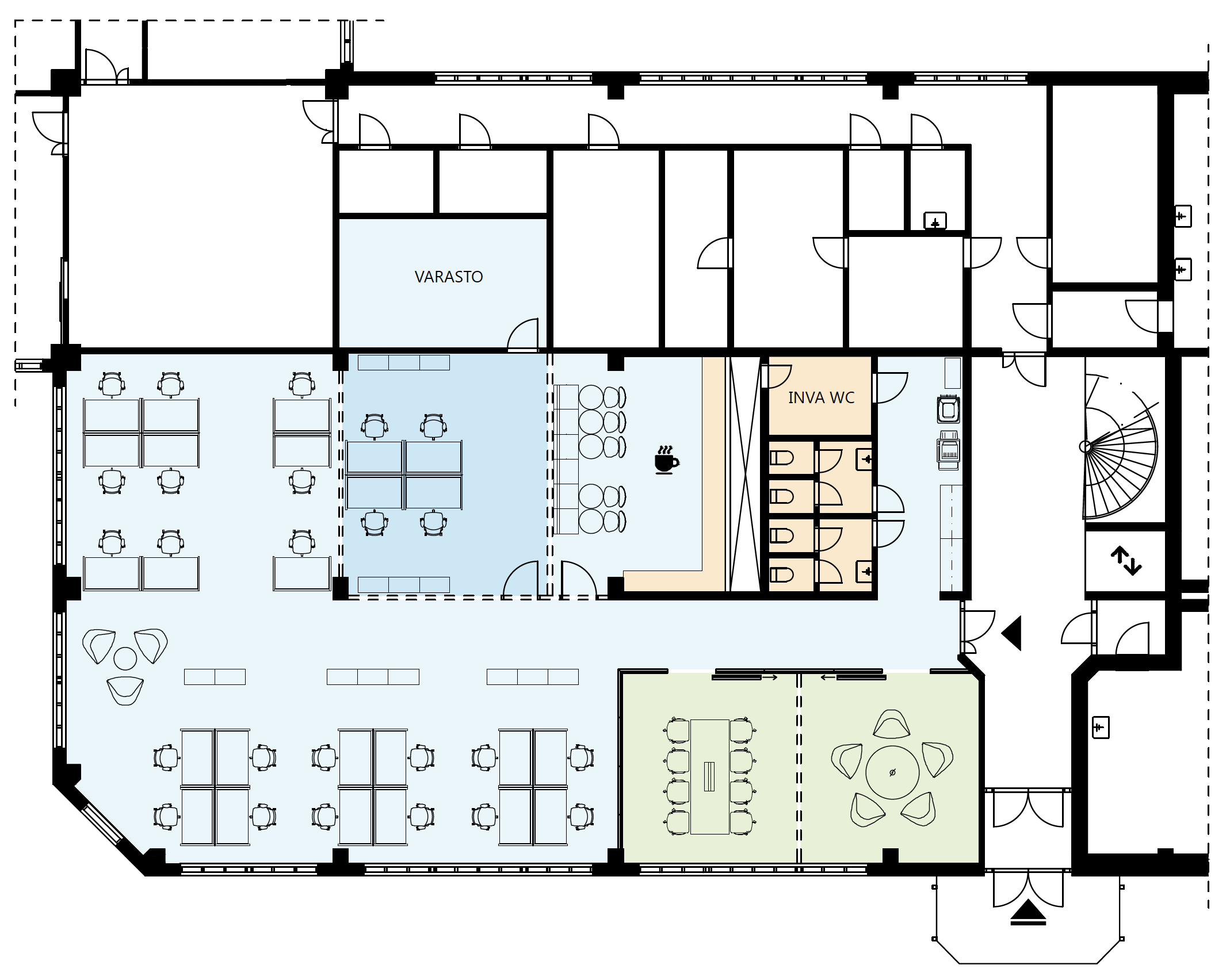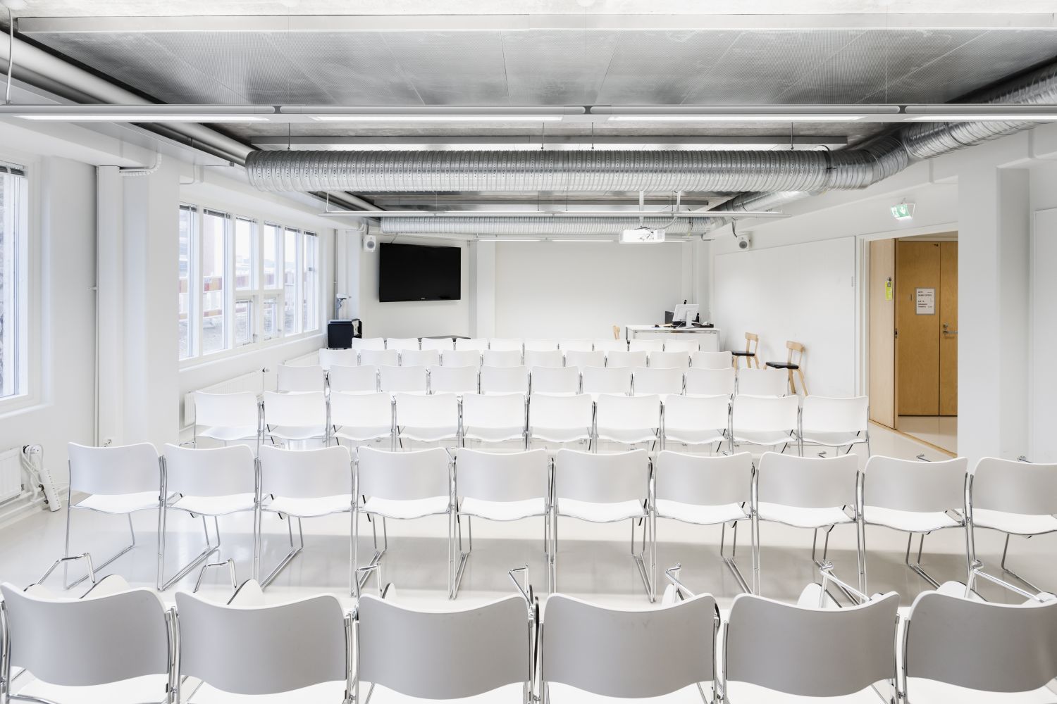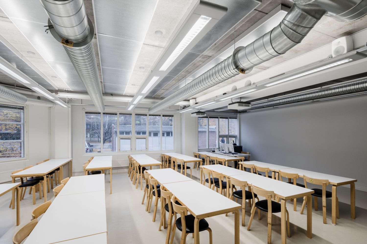 Entinen opetustila on siistiksi saneerattu ja sopii loistavasti toimistokäyttöön.
