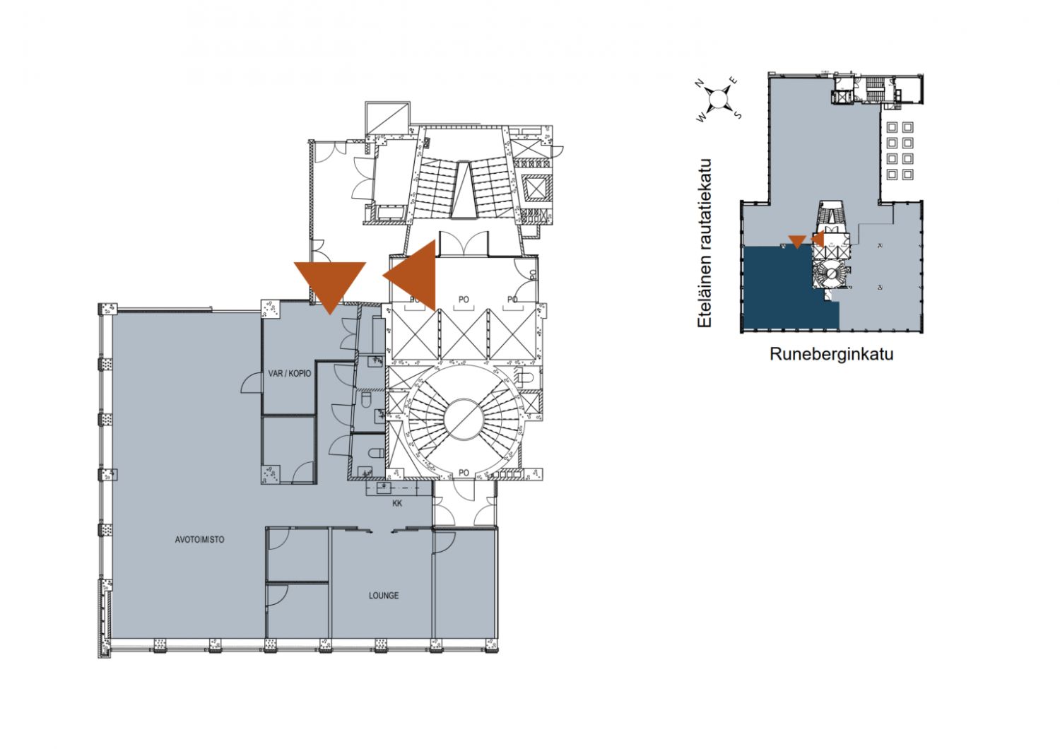 Neljännen kerroksen laadukas toimistotila. Tila koostuu avokonttorista, työhuoneista, taukokeittiöstä, lounge-alueesta sekä wc-tiloista. Autotalokortteliin vuonna 1958 valmistunut Runskivuori-toimistotalo sijaitsee erinomaisella paikalla Kampissa, Helsingin ydinkeskustassa. Kiinteistön julkisivua ja yleisiä tiloja on kunnostettu talon henkeä ja arkkitehtuuria kunnioittaen. Nyt kiinteistö tarjoaa laadukasta toimitilaa yhdessätoista kerroksessa. Toimistokerroksista on suora hissiyhteys autohalliin, ja pyöräilijöitä palvelevat pyöräparkki sekä suihkutilat.