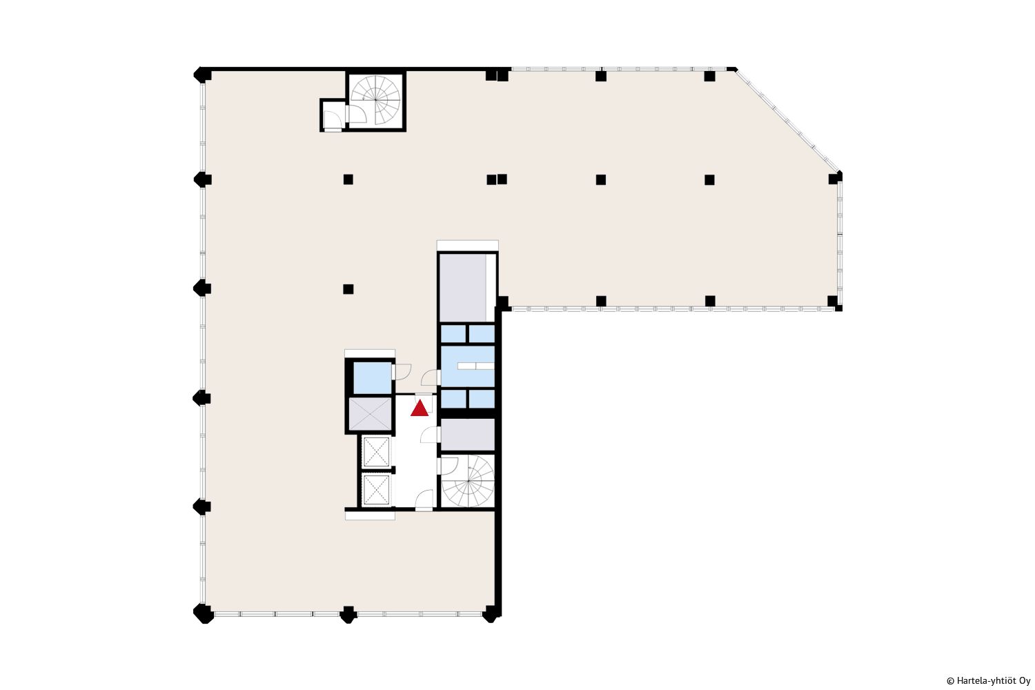 Arnan kolmannessa kerroksessa olevat monipuoliset ja muutosjoustavat tilat tukevat alati kehittyvää työnteon kulttuuria. Tilojen suunnittelussa huomioidaan ennen kaikkea käyttäjien yksilölliset tarpeet, tekniset ratkaisut ja modernin hybridityön tarpeet. Tilan voi tarvittaessa yhdistää sisäportaalla alempaan tai ylempiin kerroksiin. Ota yhteyttä ja luodaan yrityksellenne vetovoimainen koti, jossa on tilaa kehitykselle.