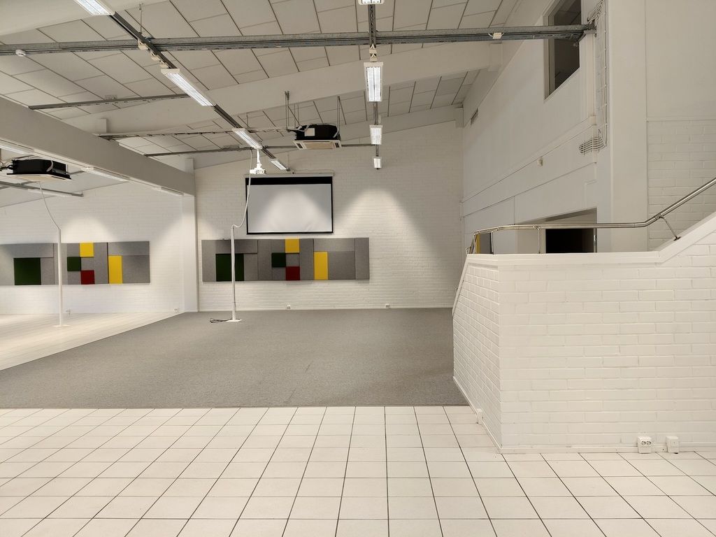 Tilan pinta-ala on yhteensä 487 m². Alakerran tilan lisäksi kokonaisuuteen sisältyy 2. kerroksen noin 88 m² tila, jossa on toimistohuoneita sekä sosiaalitilat. Koska tila on katutasossa, onnistuu isommankin tavaran tuonti helposti. Tila soveltuu monenlaiseen käyttöön, esimerkiksi liikuntatilaksi tai ravintolakäyttöön.