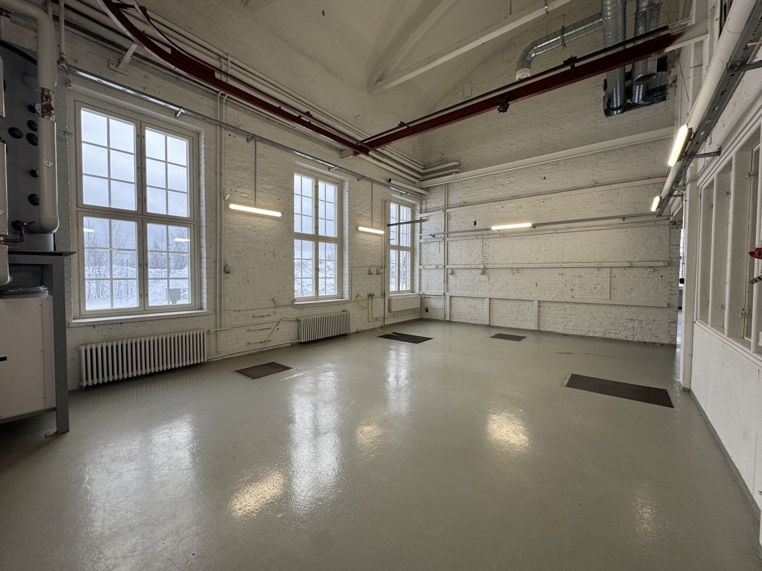 Tilat sijaitsevat Kivääritehtaan pajarakennuksen päädyissä. Tilojen pinta-alat ovat 310 m² ja 120 m². Huonekorkeus hallitiloissa noin 7 metriä, joka mahdollistaa tilojen monipuolisen käytön. Halliosaan pääsee ajamaan autolla sisään. Kulkuoven leveys on 2,8 metriä ja korkeus yli 3 metriä.