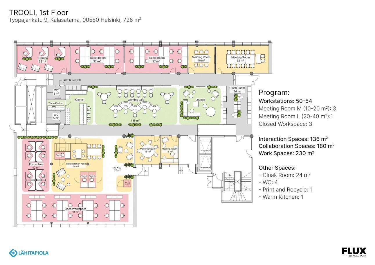 Ensimmäisen kerroksen laadukas toimitila, joka soveltuu sekä toimistoksi että showroomiksi. Tila sijaitsee Troolin D-rapussa, ikkunoilla Työpajankadulle. Tilan huonekorkeus kadun puolella ylittää 3 metriä.
