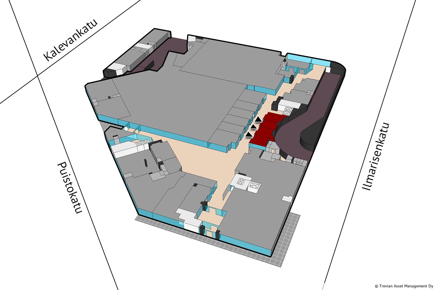 Vuokrataan liiketila kauppakeskus Kolmikulmassa Jyväskylän keskustassa. Tila sijaitsee kauppakeskuksen kauppakäytävällä. Tila on mahdollista jakaa kahdeksi 52m² kokoiseksi tilaksi.