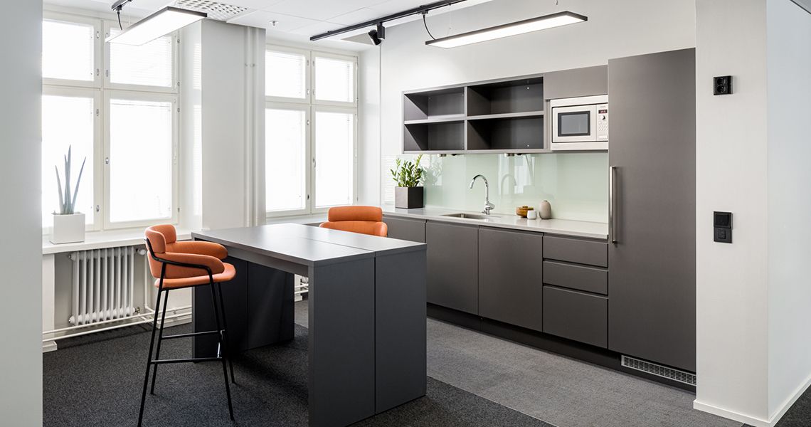 Remontoitu 170 m² yksityistoimisto Helsingin paraatipaikalta. Valoisaa avotilaa, erillinen neuvotteluhuone ja valoisa avokeittiönurkkaus.
