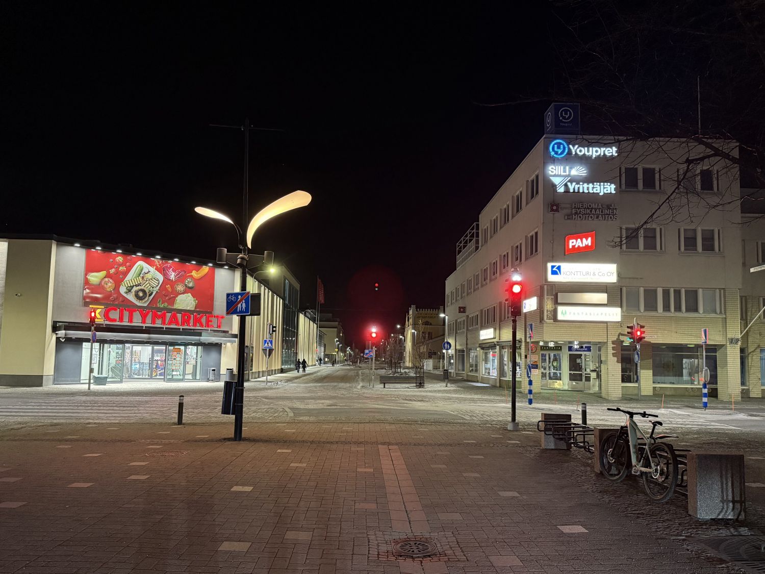 Joensuun ydinkeskustassa lämmitetyn kävelykadun päässä ja vain korttelin matka torille. Citymarketin sisäänkäynti kadun toisella puolella.