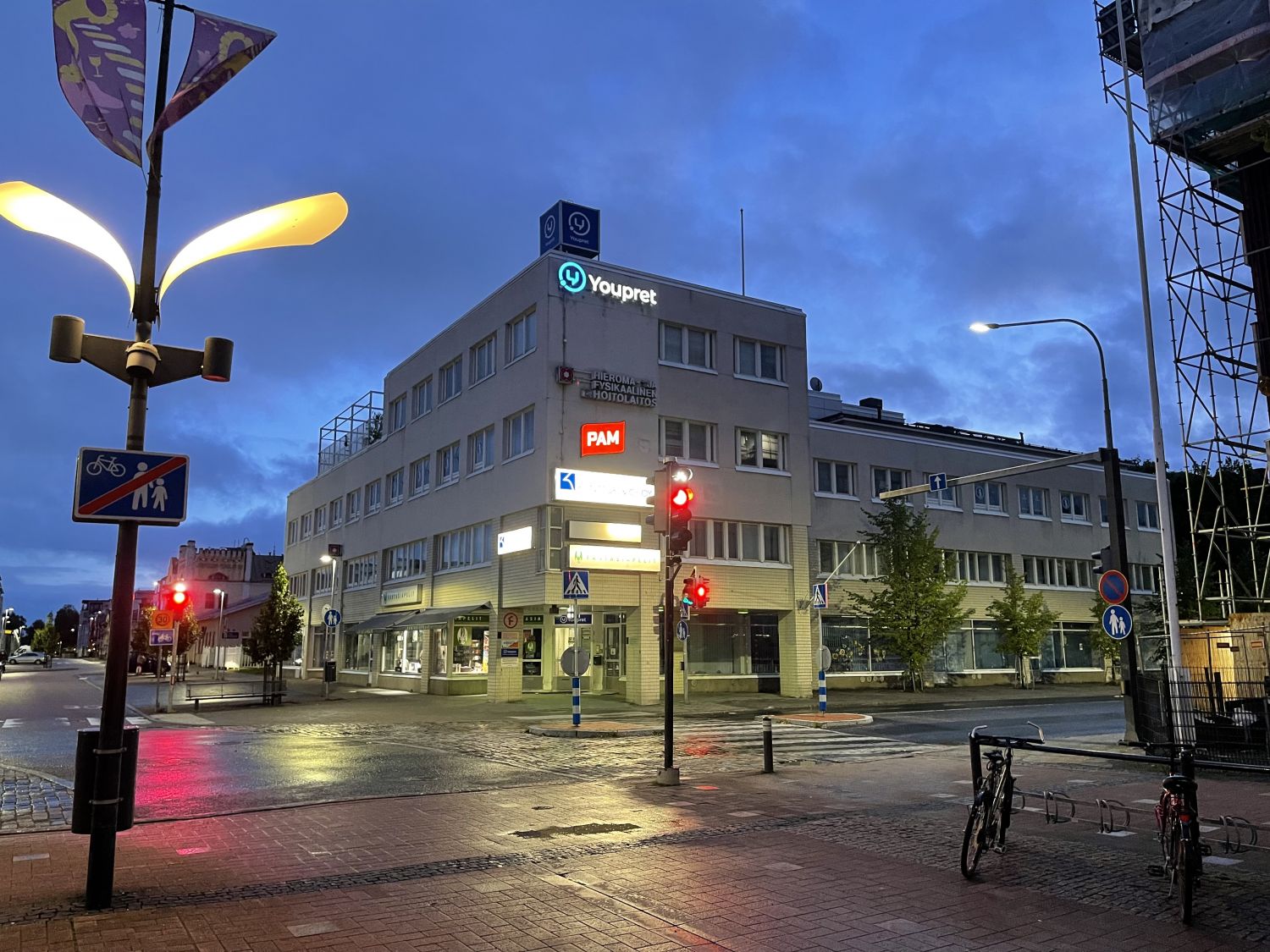 Täydellinen sijainti esimerkiksi päivittäistavarakaupalle tai muulle kauppaliikkeelle – Citymarketin sisäänkäynti suoraan vastapäätä!