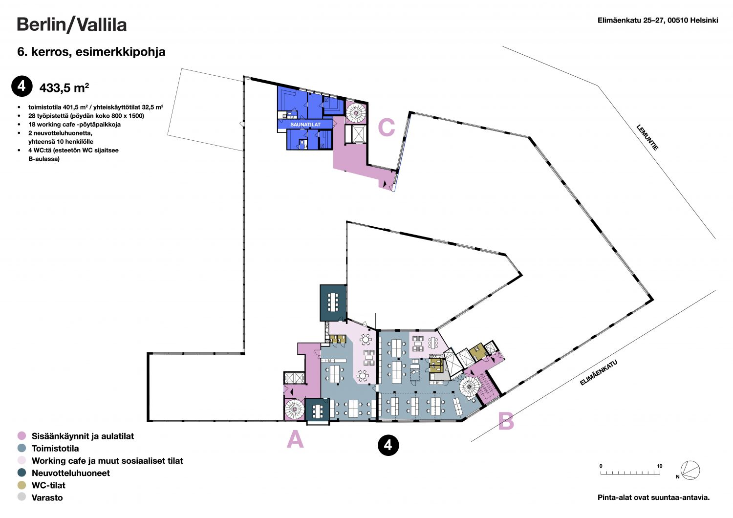 Berlin/Vallilan vapaa 433,5 m² toimistotila sijaitsee kiinteistön vanhassa, teollishenkisessä osassa ja ylimmässä kerroksessa. Tila on purettu betonille, mahdollistaen sen räätälöinnin ja tilankäytön suunnittelun vuokralaisen toiveiden ja tarpeiden mukaan.