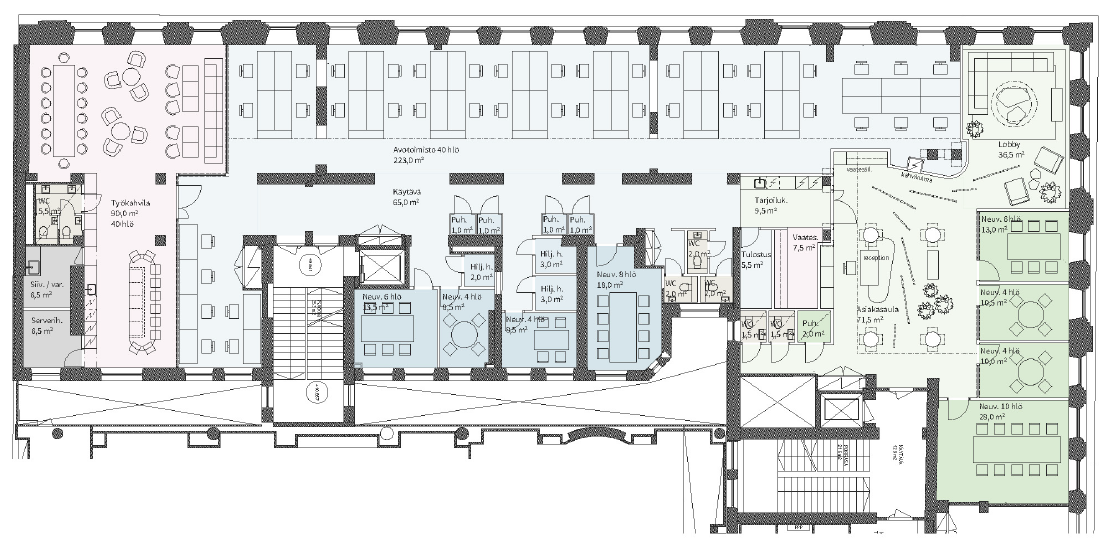 Korkea ja valoisa 678 m² toimisto ydinkeskustan arvokiinteistössä.