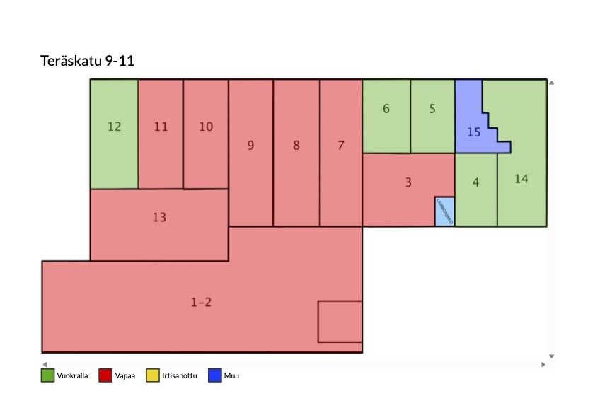 Kyseinen kiinteistö peruskorjataan vuoden 2024 aikana ja kiinteistö jaetaan pienempiin hallitiloihin.
