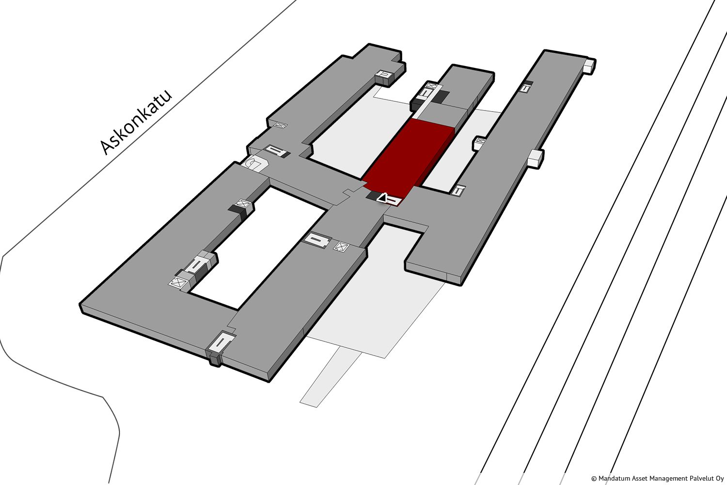 Historiallisen puusepäntehtaan toisen kerroksen raakatila. Huippusijainti. Ravintola Werstaan ja Askotalon kokouskeskuksen tilat kerrosta alempana. Ikkunanäkymät mm. Askotalon Torille. Hissiyhteys. Tila sopii sellaisenaan yhden yrityksen käyttöön, mutta on mahdollista jakaa myös kahdeksi tai kolmeksi pienemmäksi toimistoksi. Lopullinen vuokrataso riippuu tilaan tehtävien investointien laajuudesta.
