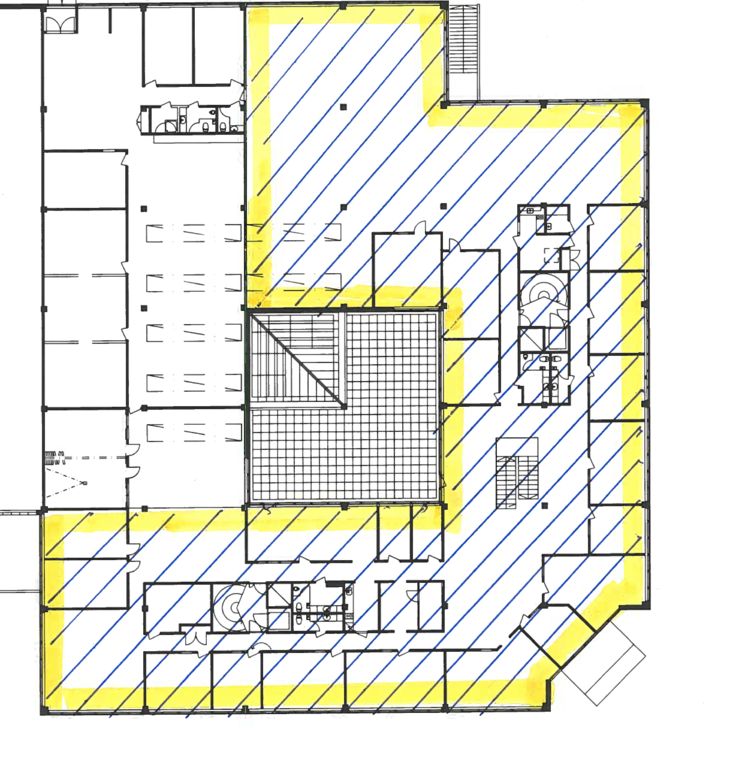 Kyseinen 1000 m² tila sijaitsee kiinteistön 2. kerroksessa. Tilassa on huoneita, avotilaa sekä omat keittiö- ja wc-tilat. Tila on mahdollista vuokrata yhdessä 1. kerroksen 640 m² liiketilan kanssa.