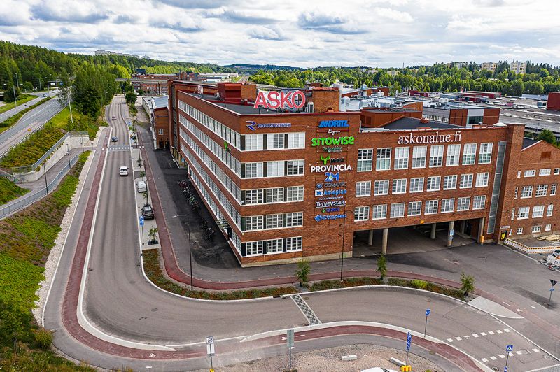 Entinen teollisuusalue ja nykyään rouhean urbaani Askonalue sijaitsee kilometrin päässä rautatieasemalta ja keskustasta.