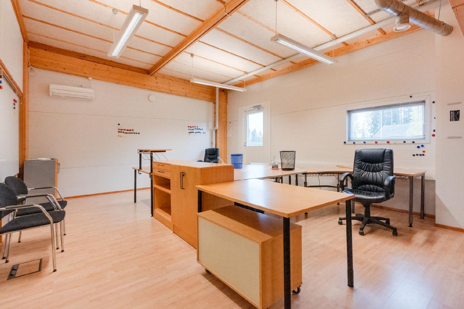 Sijoittajalle valmiiksi vuokrattu, hyvän tuoton antava tila. Nyt myynnissä Koy Sääksjärven Yritystalosta laadukas tila, jossa n. 119m2 hallitilaa korkein nosto-ovin, 67,5m2 sosiaali-, toimisto- ja varastotilaa alakerrassa sekä 58m2 toimistoparvi yläkerrassa. Toimistoparvelle on käynti joko hallista sisältä tai tarvittaessa myös ulkoa portaikkoa pitkin - tila on siis tarvittaessa jaettavissakin. Osakkeelle kuuluu myös rakennuksen päädyssä oleva, n. 100m2 lukittava häkkivarasto sekä 2kpl autopaikkoja pihassa. Hallissa on kaksi korkeaa nosto-ovea, voimavirta, kaksi ilmalämpöpumppua sekä öljynerotuskaivo.