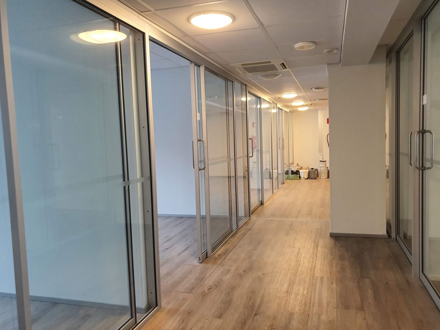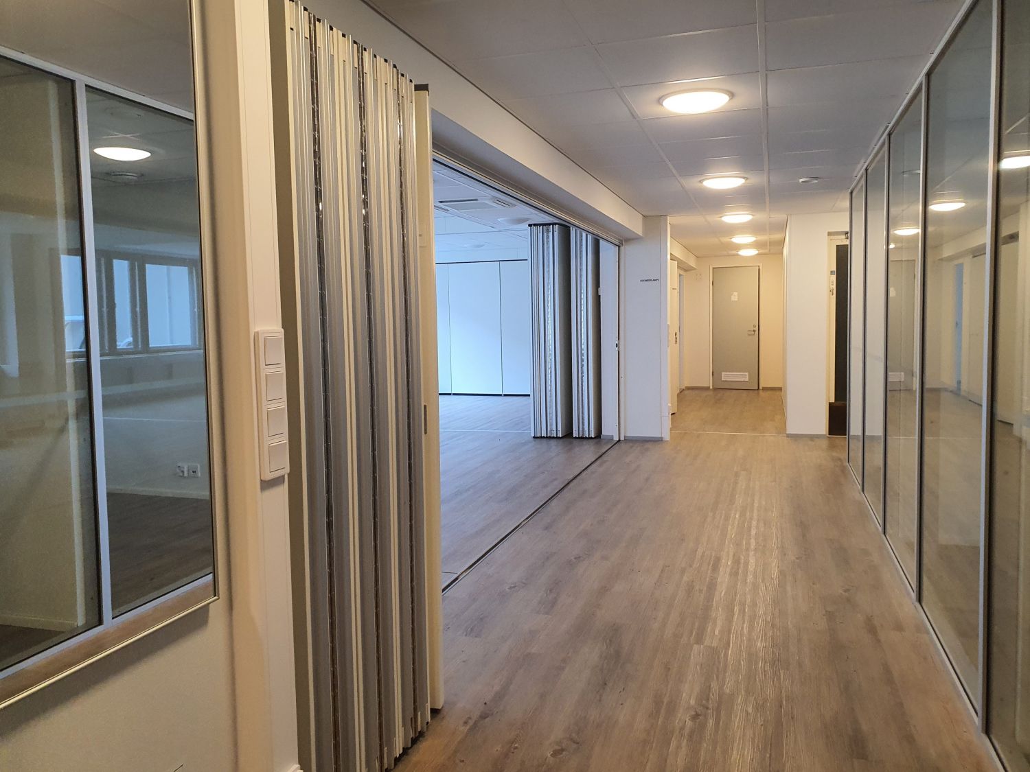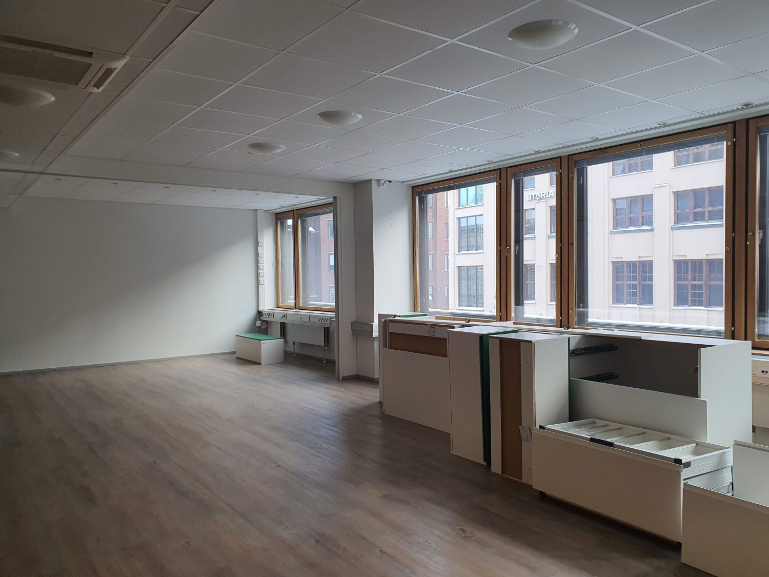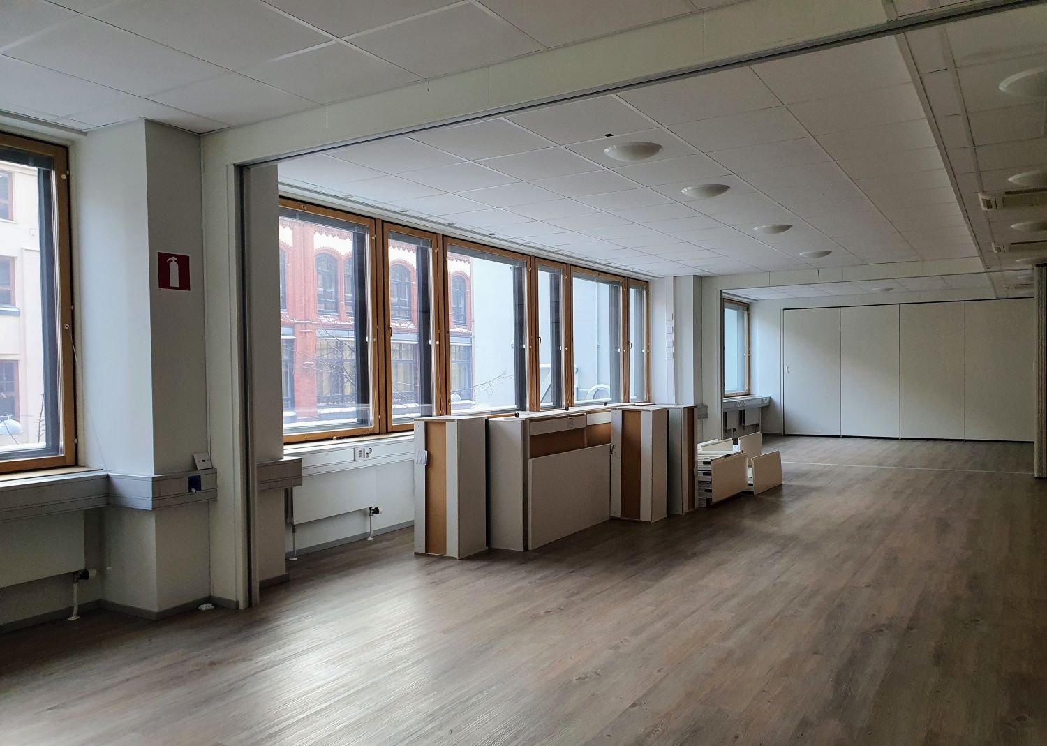 Tämä 4. krs toimistotila on pääosin avonaista, mutta sitä voi jakaa eri osiin kätevillä taitto-ovilla. Tilassa jäähdytys.