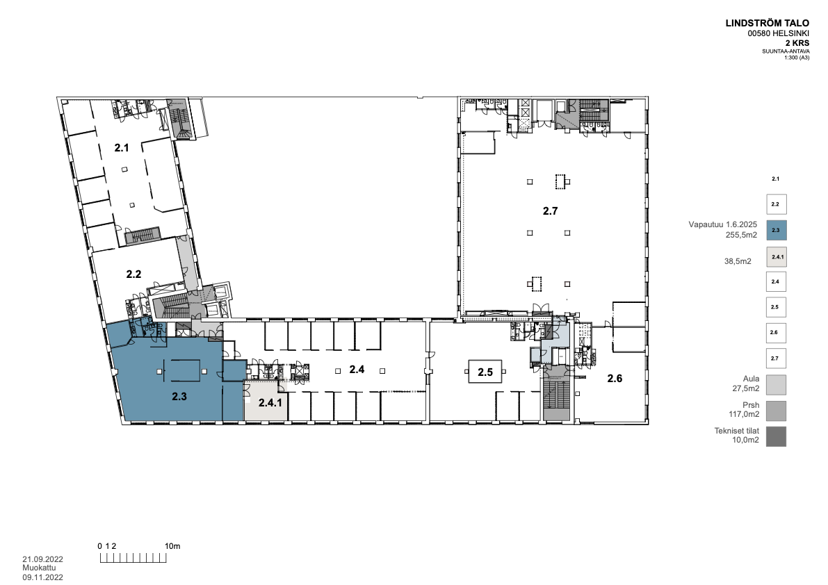 Korkea, industrial-henkinen 293 m² kulmatoimisto Lindström Talon alkuperäiseltä puolelta. Tila koostuu suuremmasta, 255 m² kokoisesta toimistosta, sekä viereisestä 38 m² pientoimistosta.