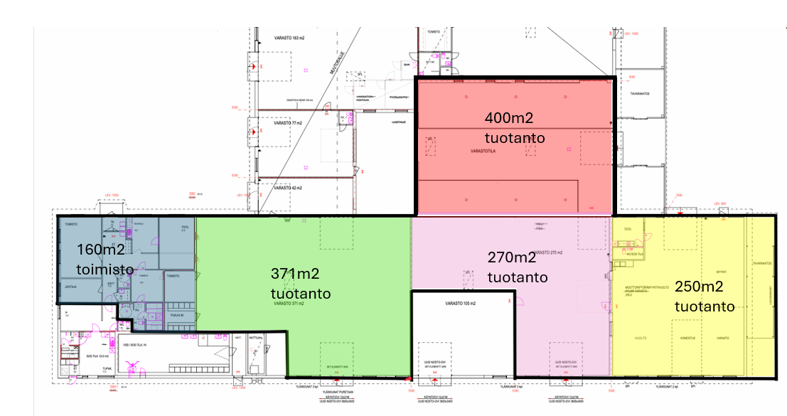 Tila on myös vuokrattavissa yhdessä kiinteistön toisen varasto - / hallitilan kanssa, jonka pinta-ala on n. 270 m2. Katso tarkempi asettelu pohjakuvasta!