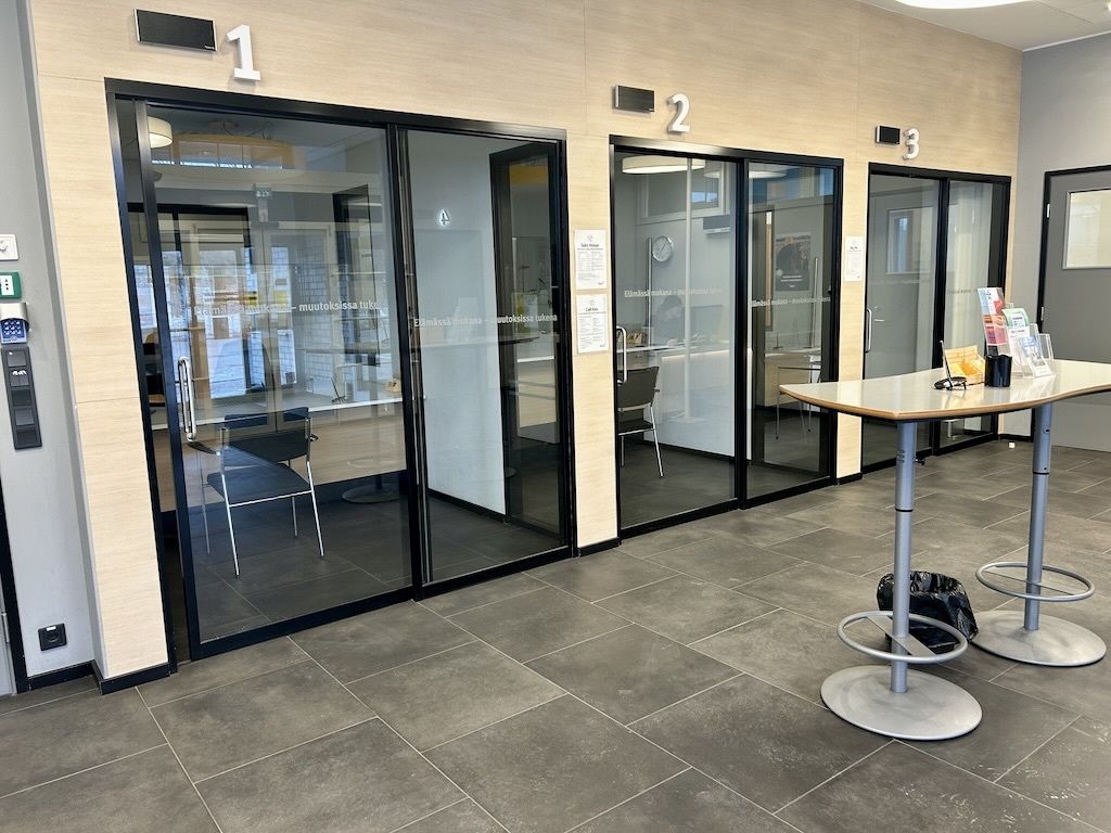 Tämä 653 m² toimitila koostuu asiakaspalvelutilasta, toimistosta ja alakerran 60 m² varastosta. Toimistossa on erikokoisia työhuoneita, neuvotteluhuone, keittiö ja omat sosiaalitilat. Tilaan on kaksi sisäänkäyntiä. Tila on remontoitu noin neljä vuotta sitten, ja siinä on toiminut Kela.