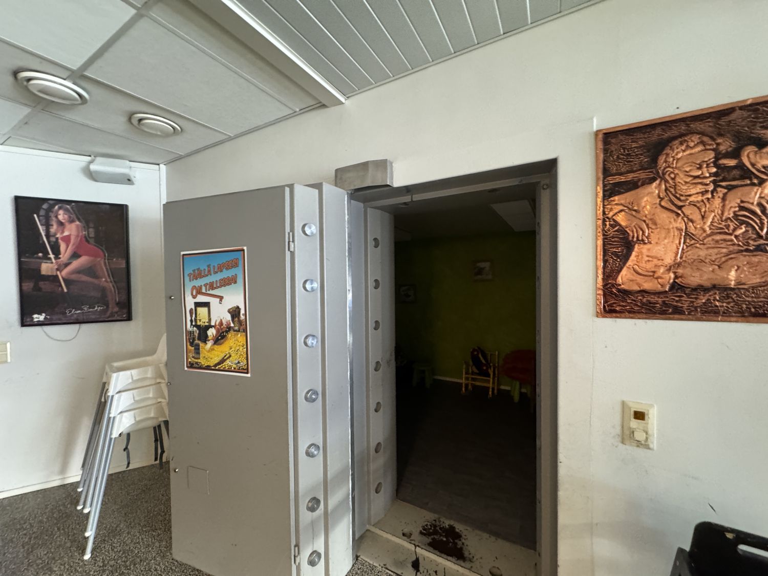 Tilat: Avointa myymälätilaa, toimistohuone, pukuhuonetilaa, kaksi wc:tä, keittiö/taukotila, pankkiholvi.
