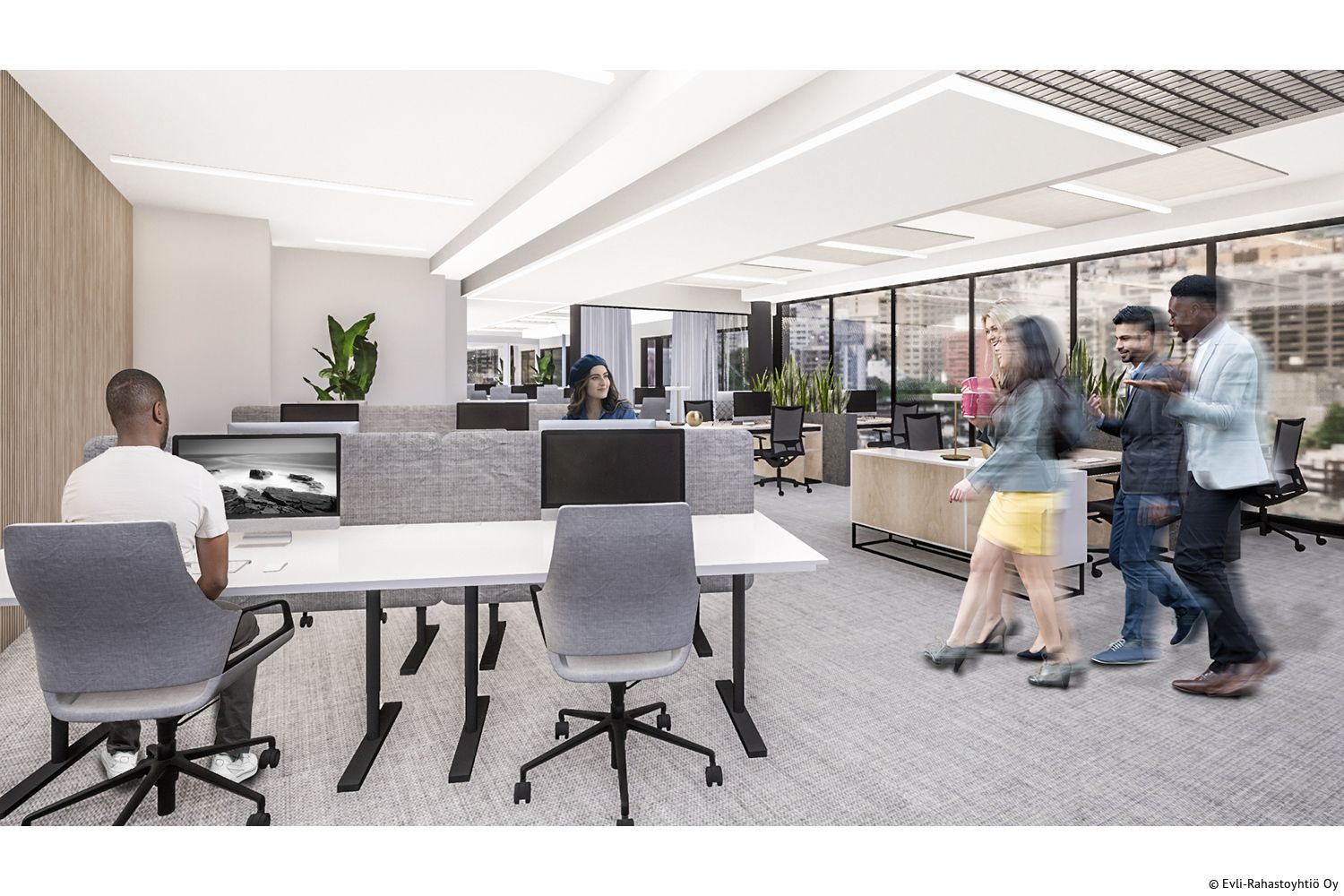 Maarinportti on täysin uudistettava toimistokohde. Tämä on esimerkki kahden toimistokerroksen kokoisesta toimitilasta, johon saa tilankäyttöratkaisusta riippuen n. 100 – 200 työpistettä. Tulevalla käyttäjällä on mahdollisuus vaikuttaa tilaratkaisuihin sekä materiaalivalintoihin yhdessä sisustussuunnittelijan kanssa. Ota yhteyttä ja pyydä lisätietoja!
