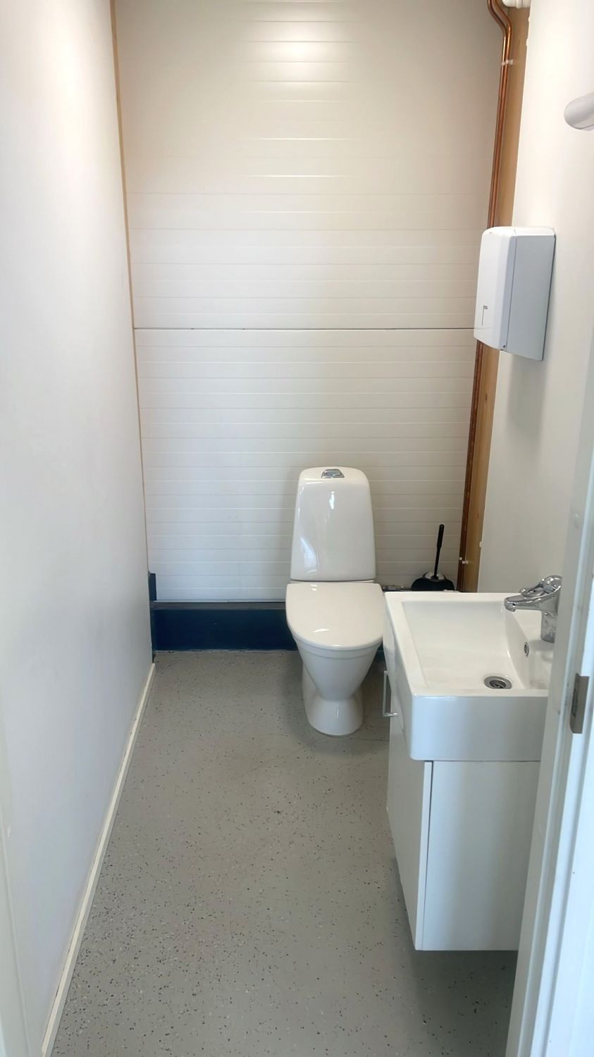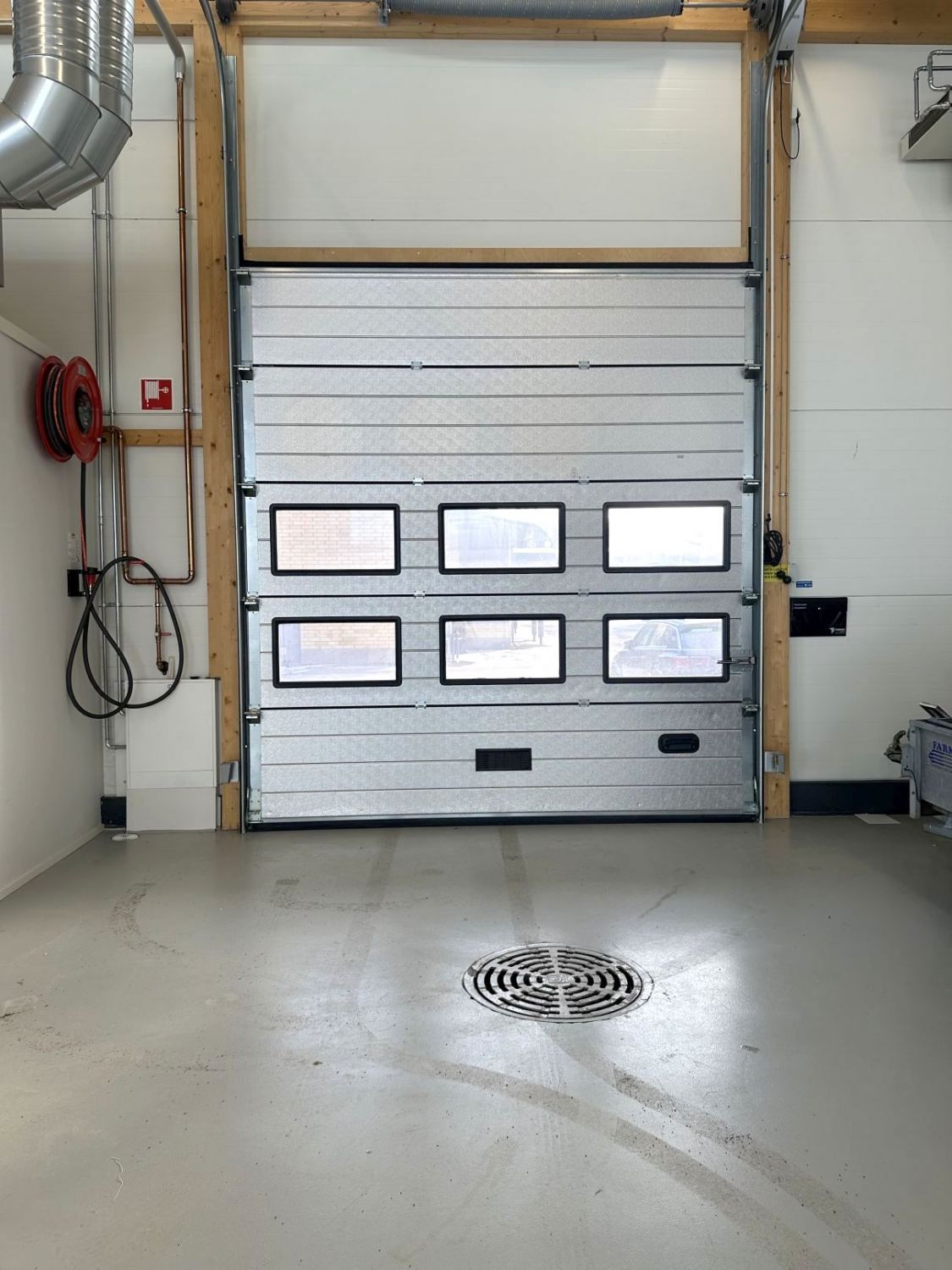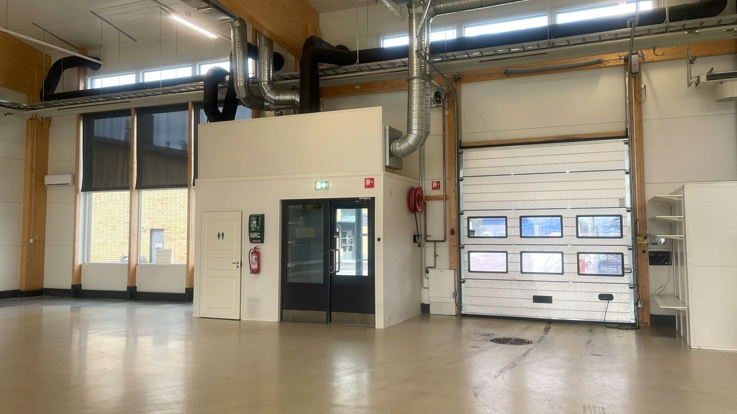 Tilassa on kolme sisäänajon mahdollistavaa nosto-ovea (korkeus 3,3 m, leveys 3 m), joiden yhteydessä on öljyn- ja hiekanerotuskaivot. Lisäksi tilaan on katettu pääsisäänkäynti, joka lisää käyttömukavuutta. Pihalla on runsaasti pysäköintitilaa.