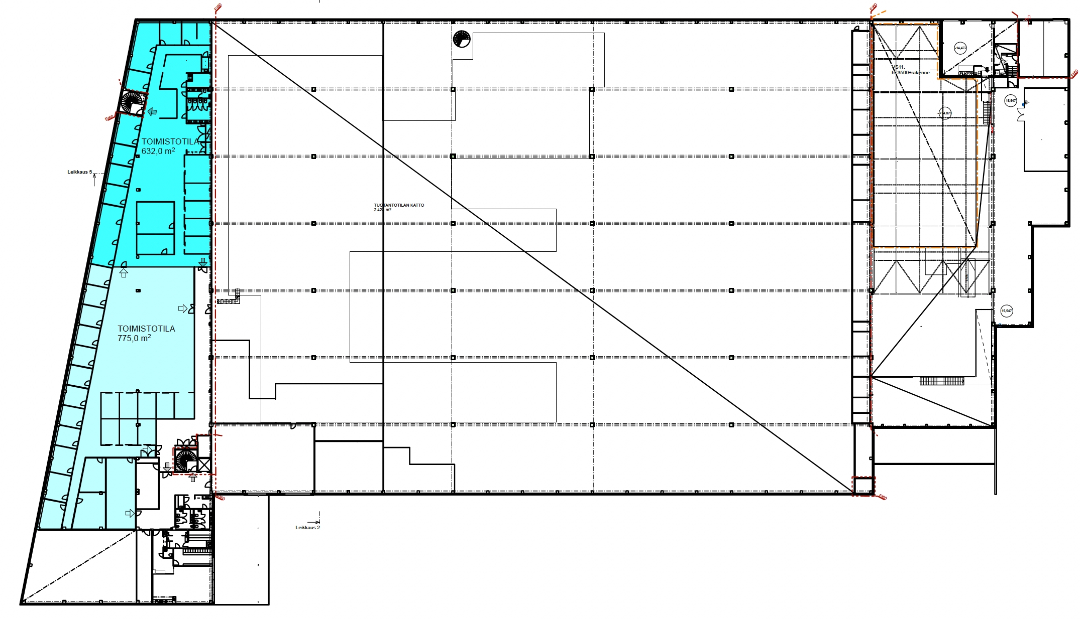 Lisäksi kiinteistössä on vapaana 2. kerroksesta toimistotilaa n. 775 m² + n. 632 m² eli yhteensä saatavilla n. 1407 m² toimistoa
