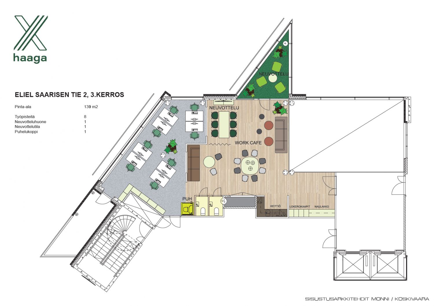 X Haaga on moderni toimistotalo Pohjois-Haagassa, Hämeenlinnanväylän varrella ja Keskuspuiston kainalossa. Vapaana kiinteistön 3. kerroksessa valoisa toimitila, joka on muokattavissa tulevan vuokralaisen tarpeisiin sopivaksi.