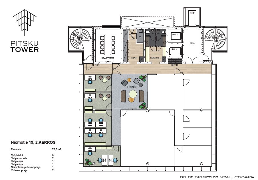 Pitäjänmäen toimistoalueen sydämessä on tarjolla modernia ja valoisaa avotilaa. Etenkin ylemmistä kerroksista on upeat näköalat Helsingin ylle. 8. kerros on juuri remontoitu, joten muuttamaan pääsee vaikka heti. Kiinteistö on Helsingin seitsemänneksi korkein rakennus, 70 metriä ja 17 kerrosta.