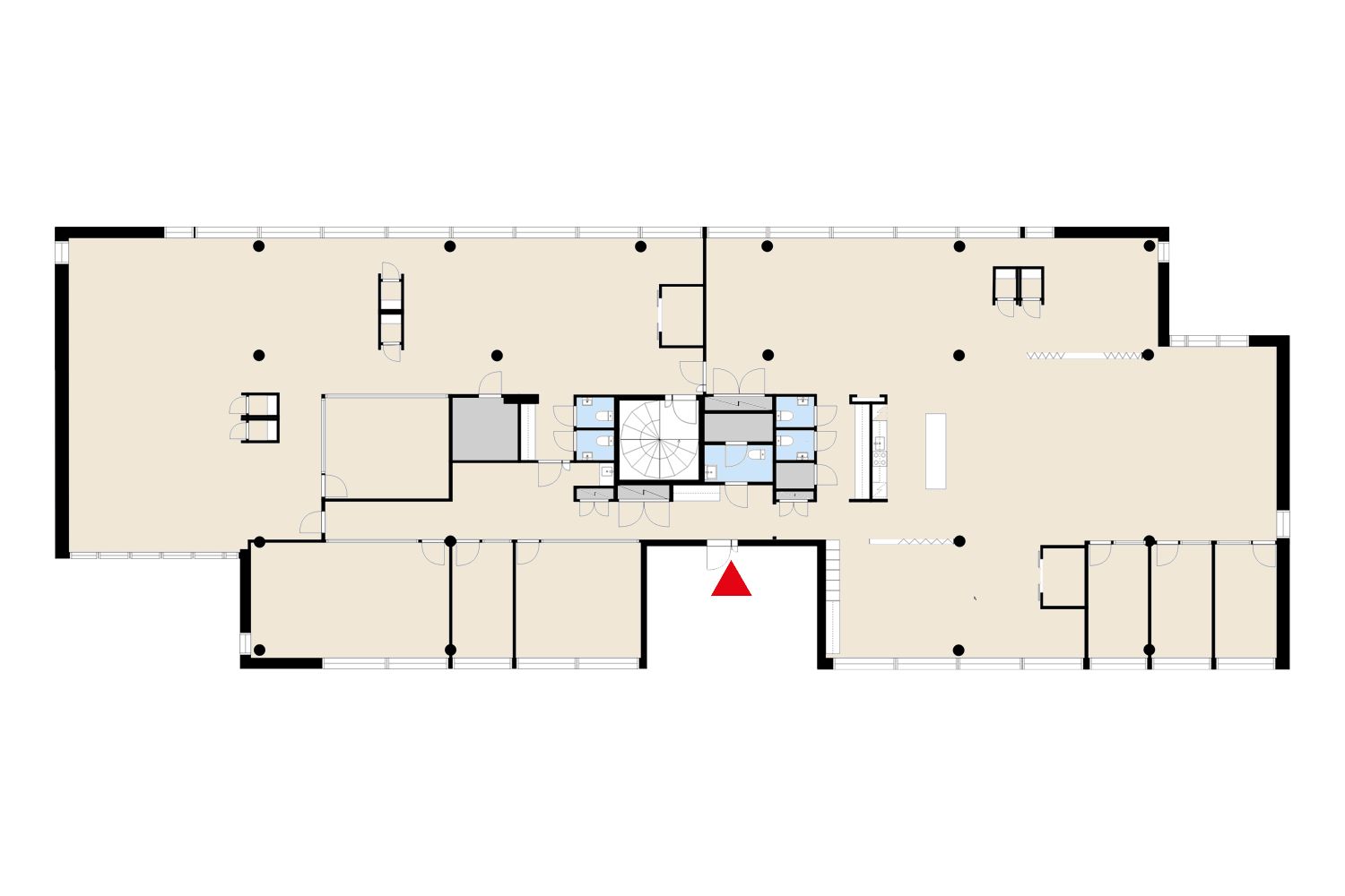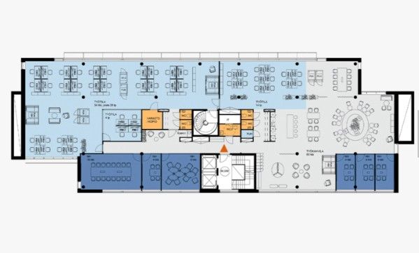 Vapaa viidennen kerroksen työtila tarjoaa avaran ja valoisan ympäristön inspiroivaan työskentelyyn. Tilat ovat muuntojoustavia ja voidaan räätälöidä tarpeiden mukaan avotilaksi, huonetoimistoksi tai näiden yhdistelmäksi. Ikkunoista avautuvat upeat näkymät rauhoittavaan Keskuspuistoon sekä vilkkaalle Kehä I:lle, tuoden tilaan sekä luonnon että kaupungin sykkeen. Tilaan mahtuu työpisteet noin 46 hengelle.