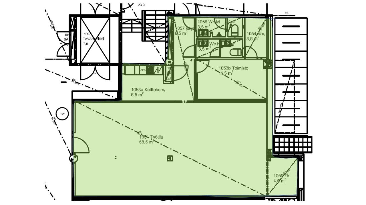 Vuokrataan 108m2 katutason siistiä toimistotilaa Postitalosta, Hallituskatu 36.