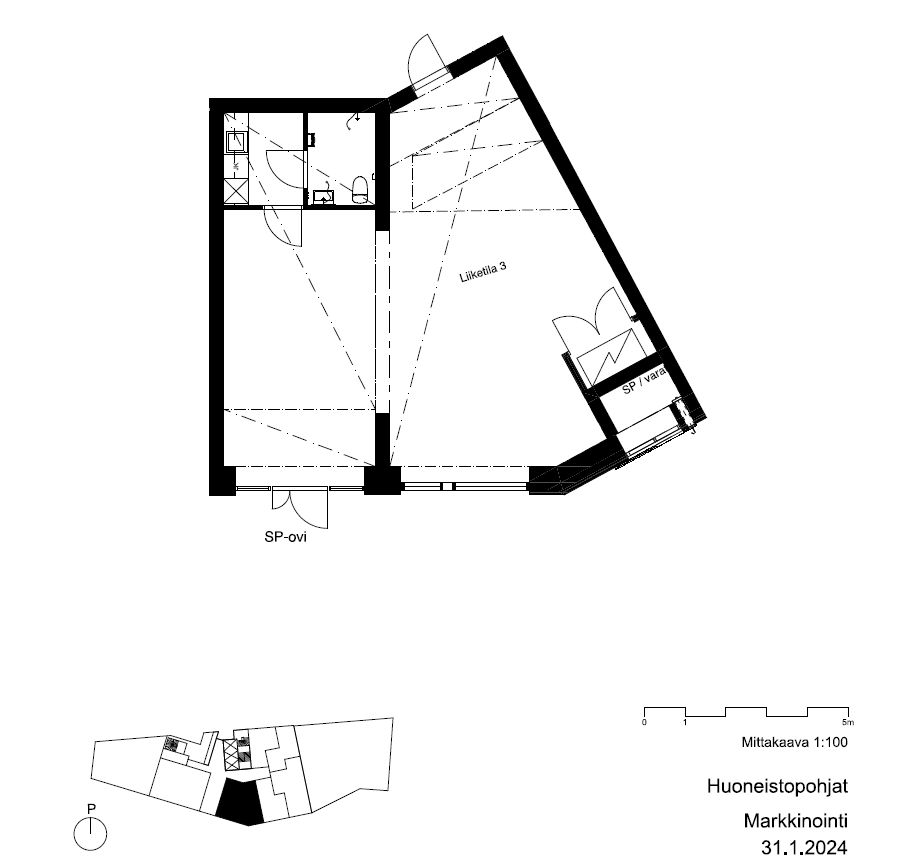 Huippumodernia liiketilaa rakennettavan 33-kerroksisen pilvenpiirtäjä Atlaksen kivijalassa.
