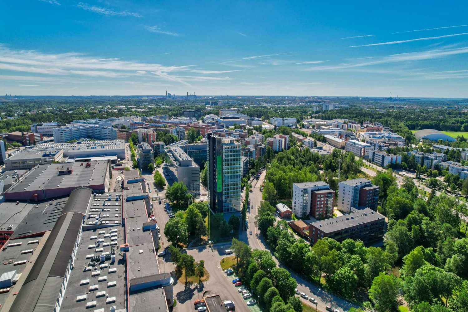 Pitäjänmäen toimistoalueen sydämessä on tarjolla moderneja ja valoisia huoneita toimistohotellista. Huoneet ovat kalustettuja, niissä on sähköpöytä ja tuoli. Yhteiskäytössä muiden kanssa WC:t, keittiö ja viihtyisä lounge-taukotila. Kiinteistö on Helsingin seitsemänneksi korkein rakennus, 70 metriä ja 17 kerrosta. 21,9 m² työhuoneeseen (pohjakuvassa Kutomo) saa helposti sijoitettua kaksi työpistettä.