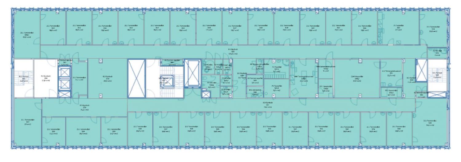 Vuokrataan 5. kerroksen 995,5 m² siistit toimistotilat Postitalosta, Hallituskatu 36.