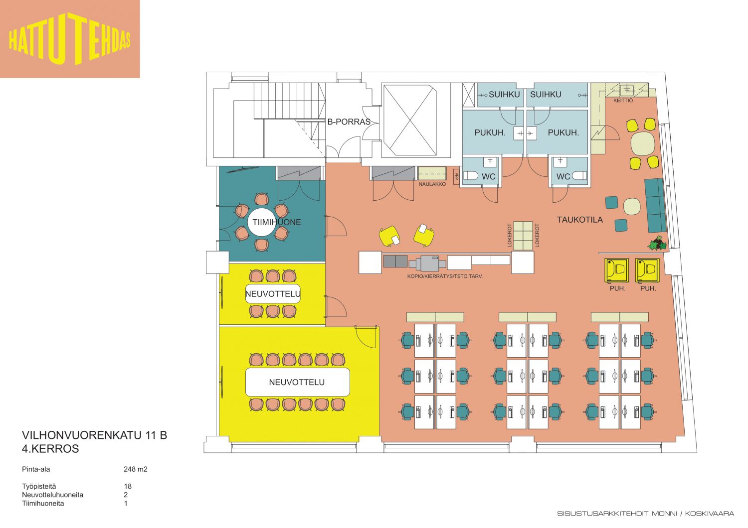 Vuokrataan 248 m2 muuttovalmis toimistotila Hattutehtaan 4. kerroksessa. Tilassa on järkevä pohjaratkaisu, johon kuuluu neuvotteluhuoneita, avotyötilaa, moderni keittiö sekä suihkutilat. Siististi remontoituun tilaan luo tunnelmaa isot ikkunat, jotka päästävät valon tulvimaan.