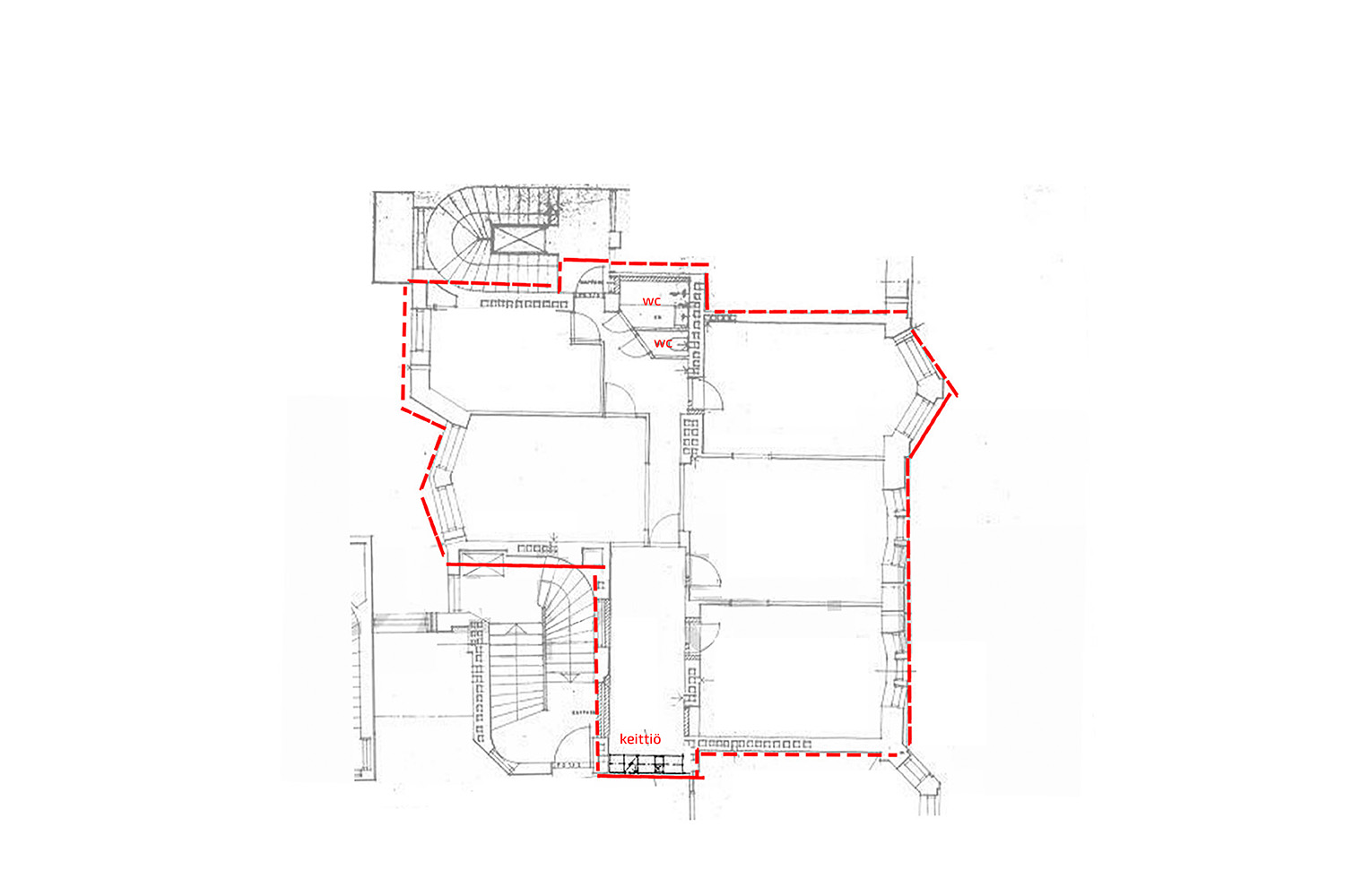 Kunto, varusteet ja palvelut: Erittäin tasokas toimistohuoneisto, 5 huonetta, wc, wc + suihkutila ja keittiö. Helsingin keskustan kaikki palvelut lyhyen kävelymatkan päässä