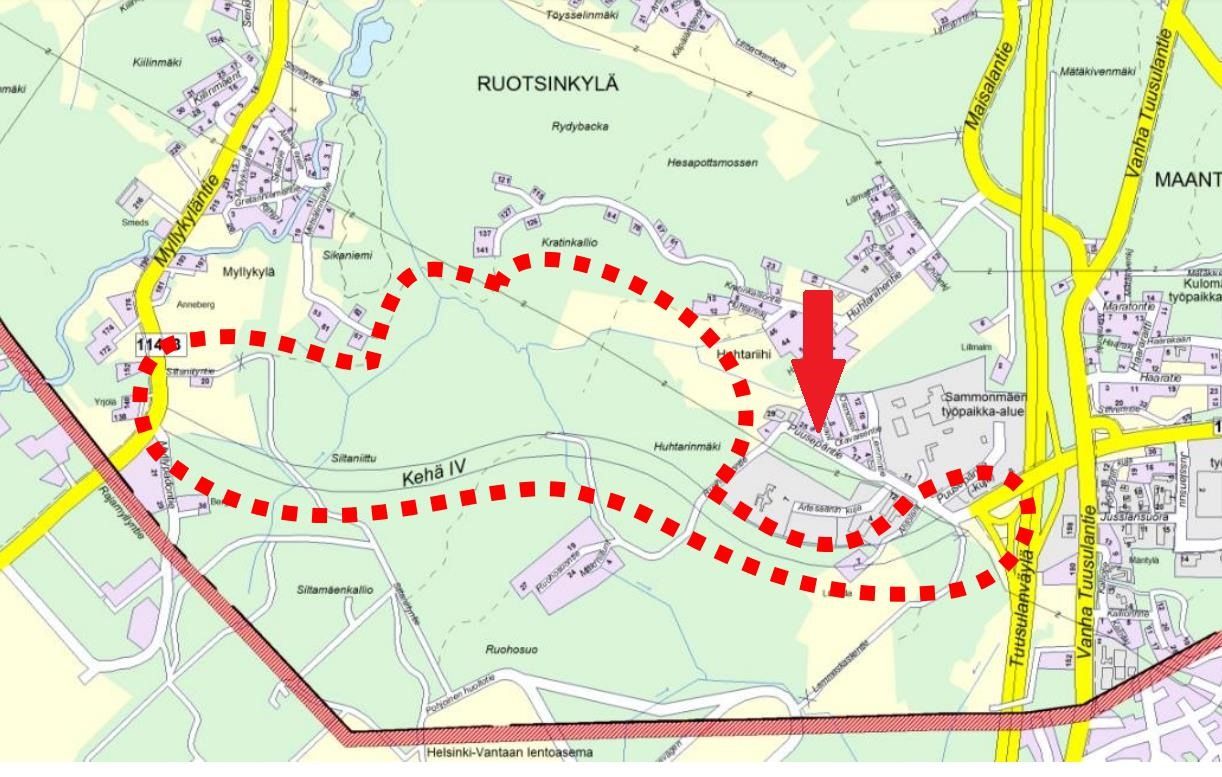 Keskeinen sijainti Tuusulanväylän läheisyydessä, sekä lähialueen kehitykseen kuuluu myös suunniteltu Kehä IV hanke.