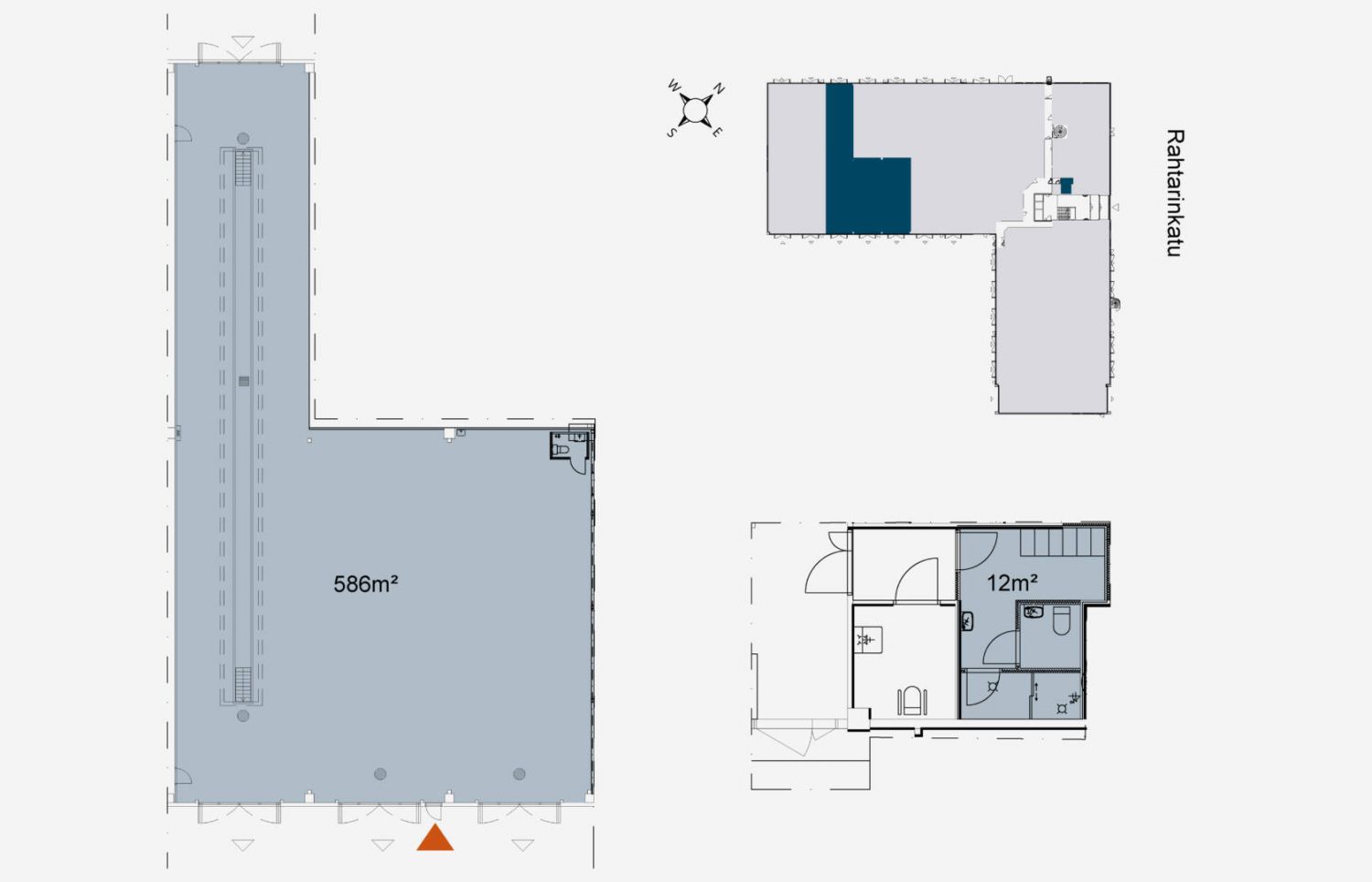 Vuokrataan raskaan kaluston huoltohalli. Kyseessä on n. 586 m²:n hallilohko, jossa on pitkä huoltokuilu. Läpiajettavaan tilakokonaisuuteen johtaa 4 moottoritoimista taiteovea. Vapaa korkeus vähintään 6 m, lattian kantavuus 20 kN/m², läpiajopituus n. 40 m. Erilliset sosiaalitilat n. 12 m² sijaitsevat tilan läheisyydessä.