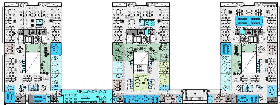 Koko kerros on kooltaan 3000 m² ja yhden siiven koko n. 1000 m².