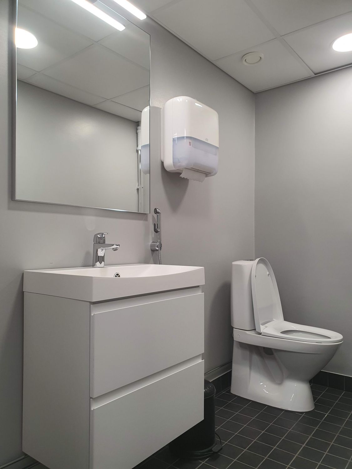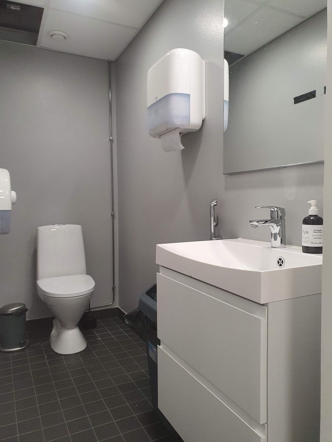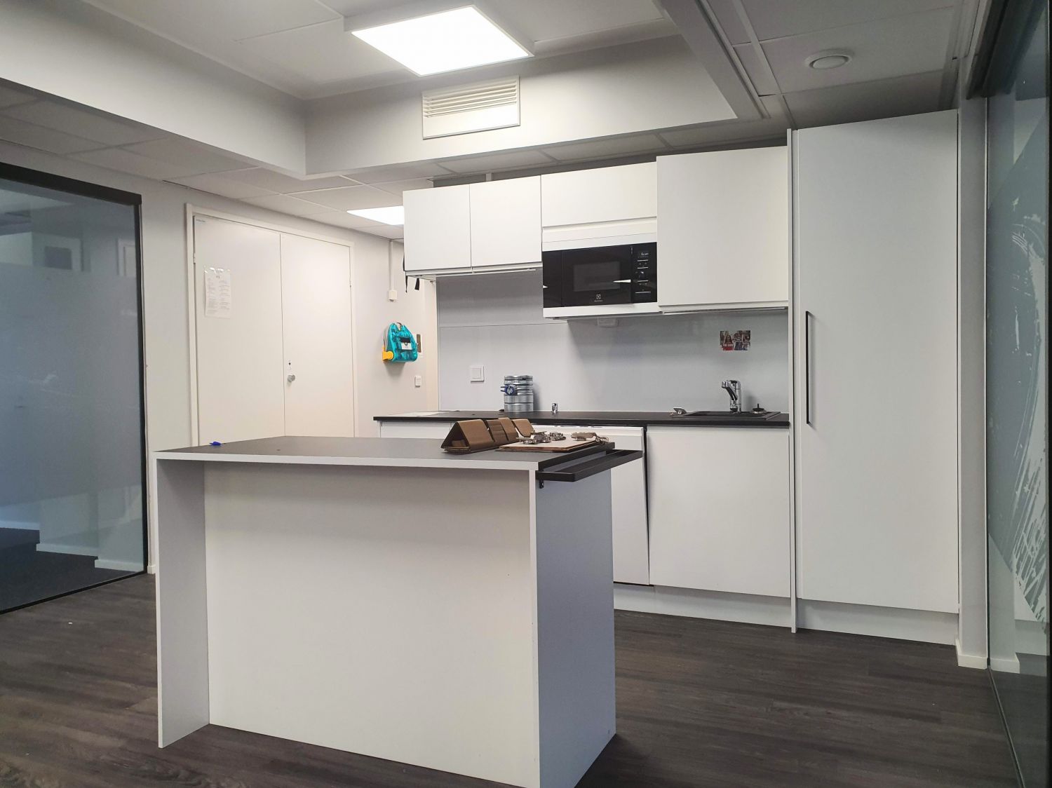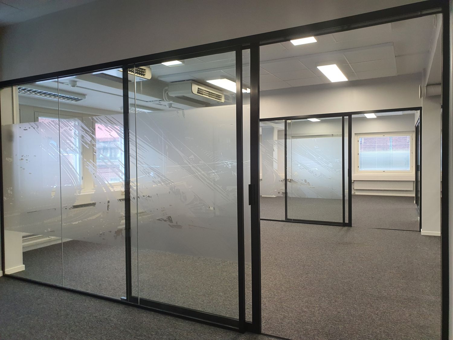 Tämä kustannustehokas 5. kerroksen toimistotila taipuu moneen. Tilakokonaisuuteen kuuluu erikokoisia huoneita lasiseinin ja ilman. Taukokeittiö sekä avokeittiö saarekkeella, 4 WC-tilaa ja pari erillistä suihkua pukeutumistiloilla.