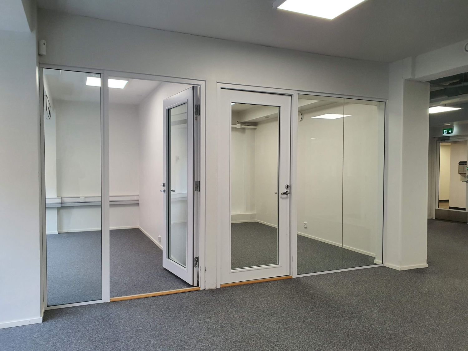 Tässä tilassa on pienen avotilan lisäksi 8 työskentelytilaa, mutta runsas lasielementtien käyttö tekee tilasta avaran tuntoisen, avokeittiö ja pari WC-tilaa.