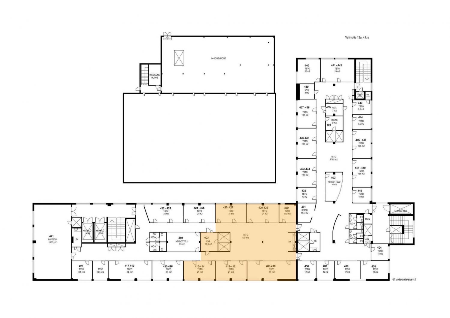Jäähdytetty toimistotila Valimotie 13 a:n rakenuksessa omalla sisäänkäynnillä rakennuksen neljännessä kerroksessa. Tila koostuu useammasta toimistohuoneesta ja tilajakoa on muokattavissa tarpeen mukaan. Tila sisältää oman keittiön.