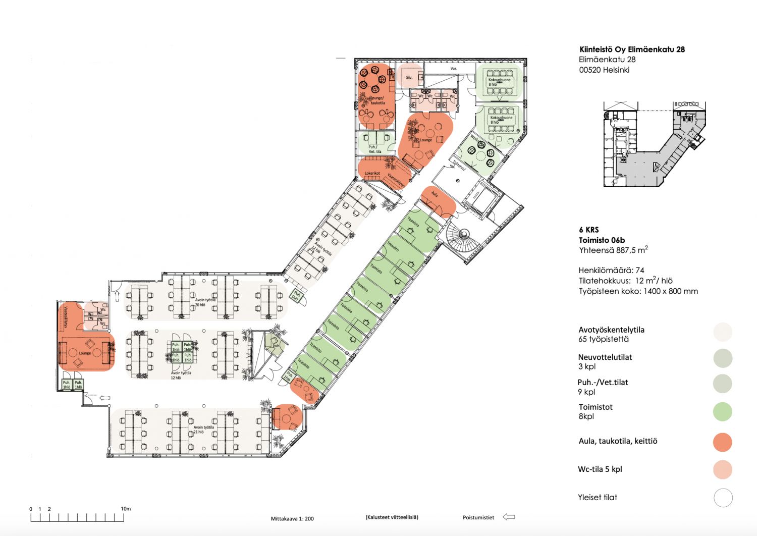 Helposti lähestyttävä kohde sijoittuu lähelle vilkkaasti liikennöityä Mäkelänkatua ja Pasilan asemaa. Elimäenkadulta pääsee sutjakasti niin Tuusulanväylän kuin Lahden moottoritien alkuun. Raitiovaunu sekä bussi tuovat työmatkalaiset talon välittömään läheisyyteen. Pyöräilijöille on omat suihkutilat. Kiinteistön kerroksista on yhteys kiinteistön omiin pysäköintitiloihin.