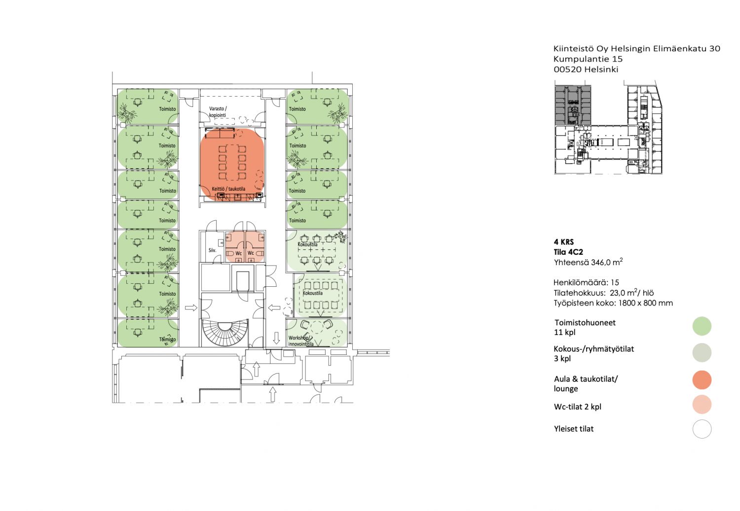 Elimäenkatu 30 toimitilat ovat viihtyisiä, teollisuushenkisiä ja hiljattain uudistettuja. Toimistot ovat muokattavissa tarpeiden mukaan. Lähistöllä on useita lounasravintoloita.