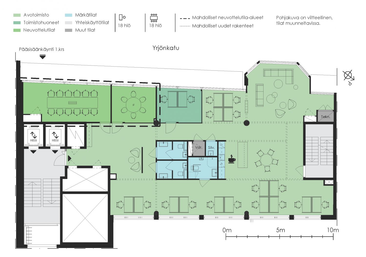 Vuonna 1985 valmistunut Yrjönkatu 29-toimistokiinteistö sijaitsee Suomen ikonisimman kauppakeskuskorttelin, Forumin, yhteydessä, kehittyvän kauppakadun varrella. Syksyllä 2021 täysin remontoiduista tiloista voi muokata itselleen pienen tehokkaan toimiston tai uniikin pääkonttorin.