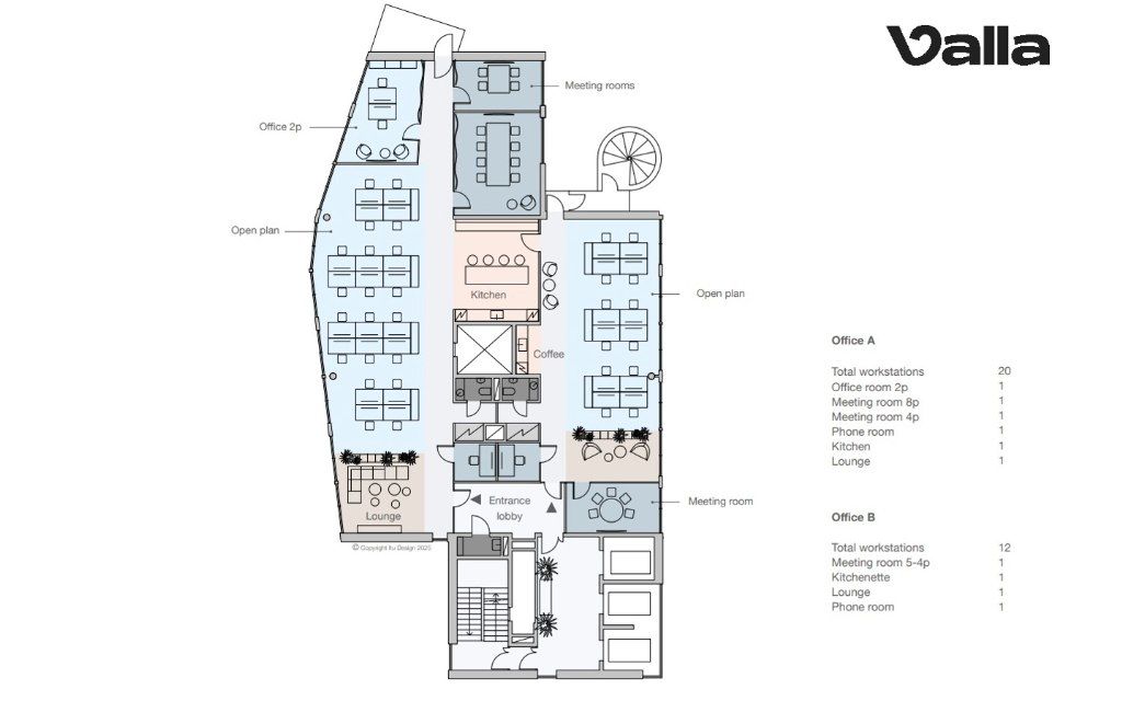 Vuokrattavana laadukasta toimistotilaa Helsingin Ruoholahdessa, erinomaisella sijainnilla. Kiinteistö Valla on arkkitehti Pekka Helinin suunnittelema, ja sen tilat ovat muuntojoustavia, sillä ne rakennetaan ja suunnitellaan yrityskohtaisesti. Rakennuksessa on kattavat palvelut, jotka tukevat yritysten toimintaedellytyksiä.
