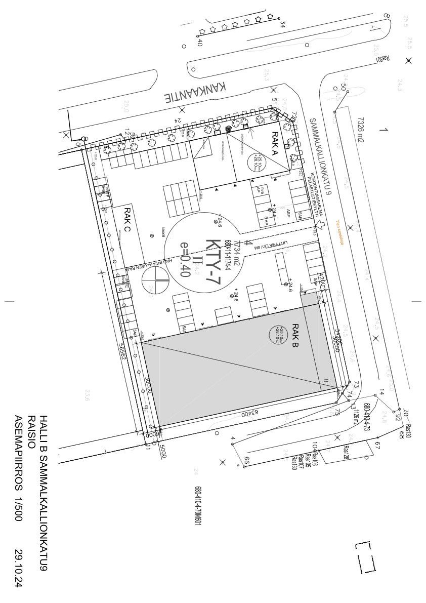 Vuokrattavana 2 123 m² tuotantokiinteistö, osoitteessa Sammalkalliontie 9b, Raisio. Tontille rakennetaan korkealuokkainen tuotantohalli, jossa tuotantotilojen kerrosala on 1 927 m² ja toimiston osuus 196 m². Hallin korkeus 6 metriä.