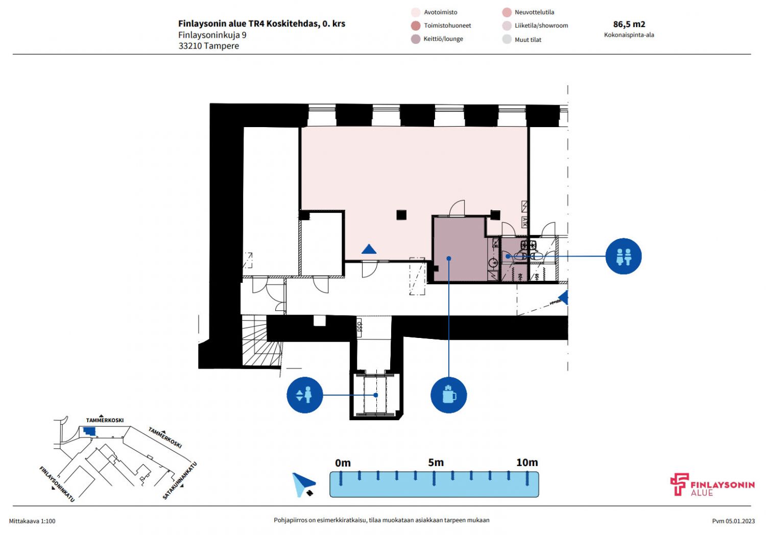 Vuokrataan pohjakerroksen noin 86,5 m2 toimistotila Finlaysonin alueelta.