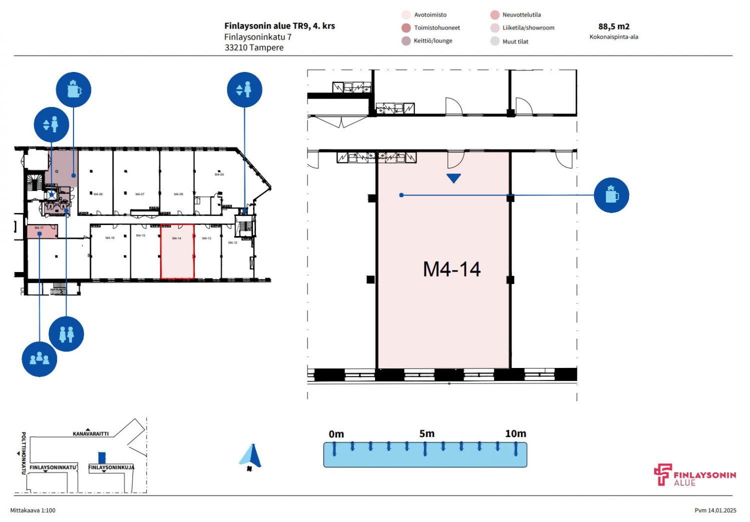Vuokrataan noin 88,5 m2 jäähdytettyä toimistotilaa Finlaysonin alueelta.