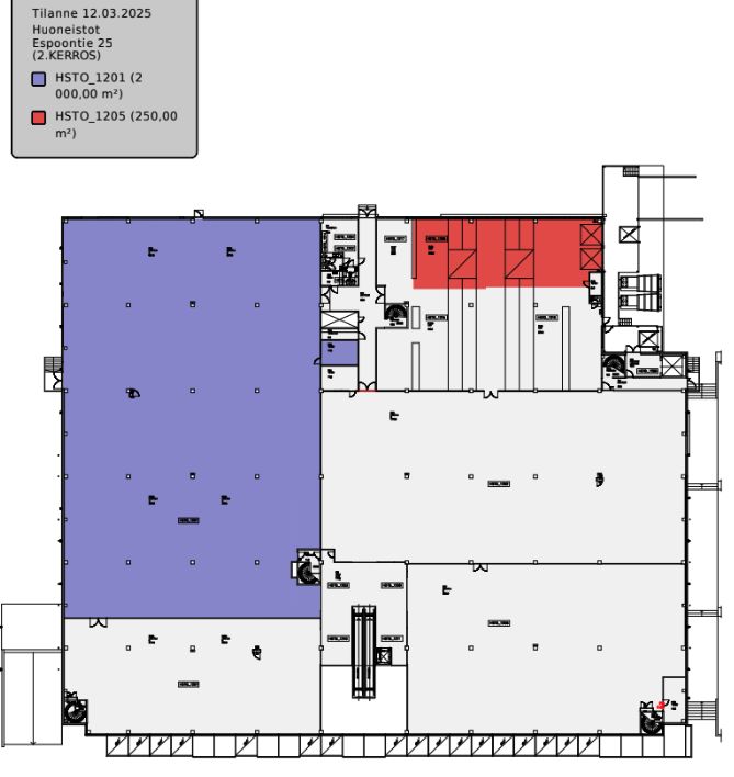 Tämä 2495 m² liiketila sijaitsee kiinteistön 2. kerroksessa. Tilakokonaisuus koostuu n. 2000 m² myymälätilasta, n. 250 m² varastotilasta sekä n. 245 m² yhteis- ja jyvitetyistä tiloista.