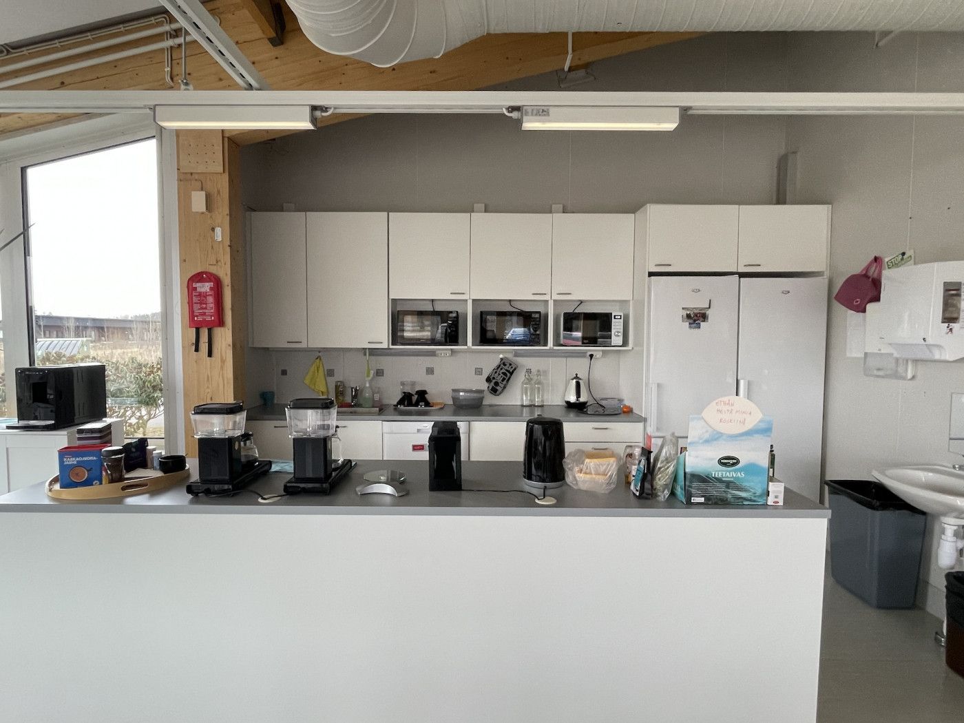 Kiinteistö on tällä hetkellä yhden yrityksen käytössä, vuokrattava 610m2 alue on rajattu pohjakuvassa vihreällä. Yhteiskäyttöön toivotaan jäävän keltaisella merkattua iso ja valoisa taukotila jossa avokeittiö. Pohjakuvasta poiketen osa väliseinistä saattaa olla eri paikoilla.