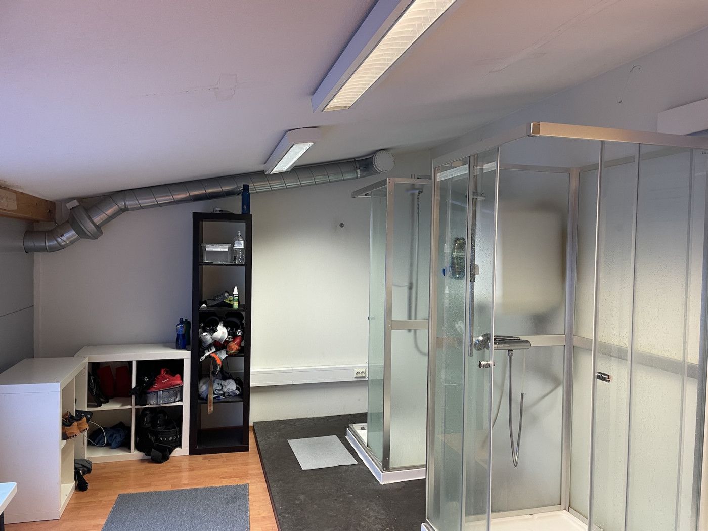 Korkea 420m2 hallitila, jossa on lisäksi noin 90 m² parvi, jossa toimisto- ja sosiaalitilat.